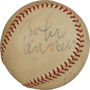 Over 100 items up for bid include the Beatles baseball billed as, "The Finest Known Example of a Baseball Signed by the Beatles." Estimated to fetch $40,000. Leave it to Charlie O. Finley, the Kansas City Athletics owner and peerless promoter, to coax one more show out of the Fab Four with the largest sum ever paid for a single performance ($150,000). Rather than a day of rest before engagements in New Orleans and Dallas, the young Liverpudlians took to the stage of Kansas City's Municipal Stadium, home of the loveable but hapless Athletics. Though the club was on the road when their stadium was set upon by over twenty thousand screaming fans, one of the ballplayers took steps to ensure that a stadium worker secured a memento for his girlfriend, utilizing a medium available in great supply, an Official American League (Cronin) baseball."