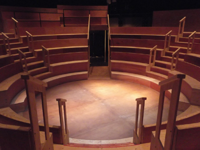 A fully self-contained portable theatre. A 111-seat portable theatre-in-the-round, which packs flat, and sets up in a few hours.