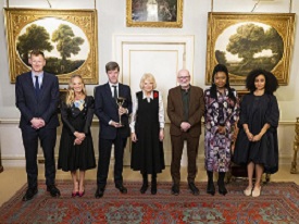 Her Majesty The Queen with Booker Prize 2025 winning author David Szalay and the Booker Prize 2025 judges at Clarence House © David Parry for Booker Prize Foundation"