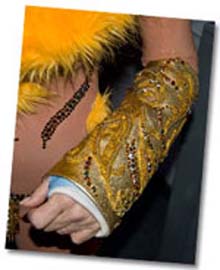 corseted wrist in the Black and White video.