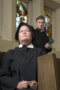 Penny Marshall as the overbearing mother, with Desmond Harrington as her put-upon son.