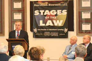The production was also noteworthy because Judge Brennan, former chief justice of the Michigan Supreme Court and former president of Cooley, was enticed away from his Florida retirement to take on the role of the judge.
