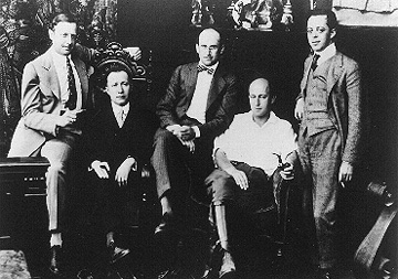 Lasky Feature Play Co (left to right) Jesse L. Lasky, Adolph Zukor, Samuel Goldfish (later